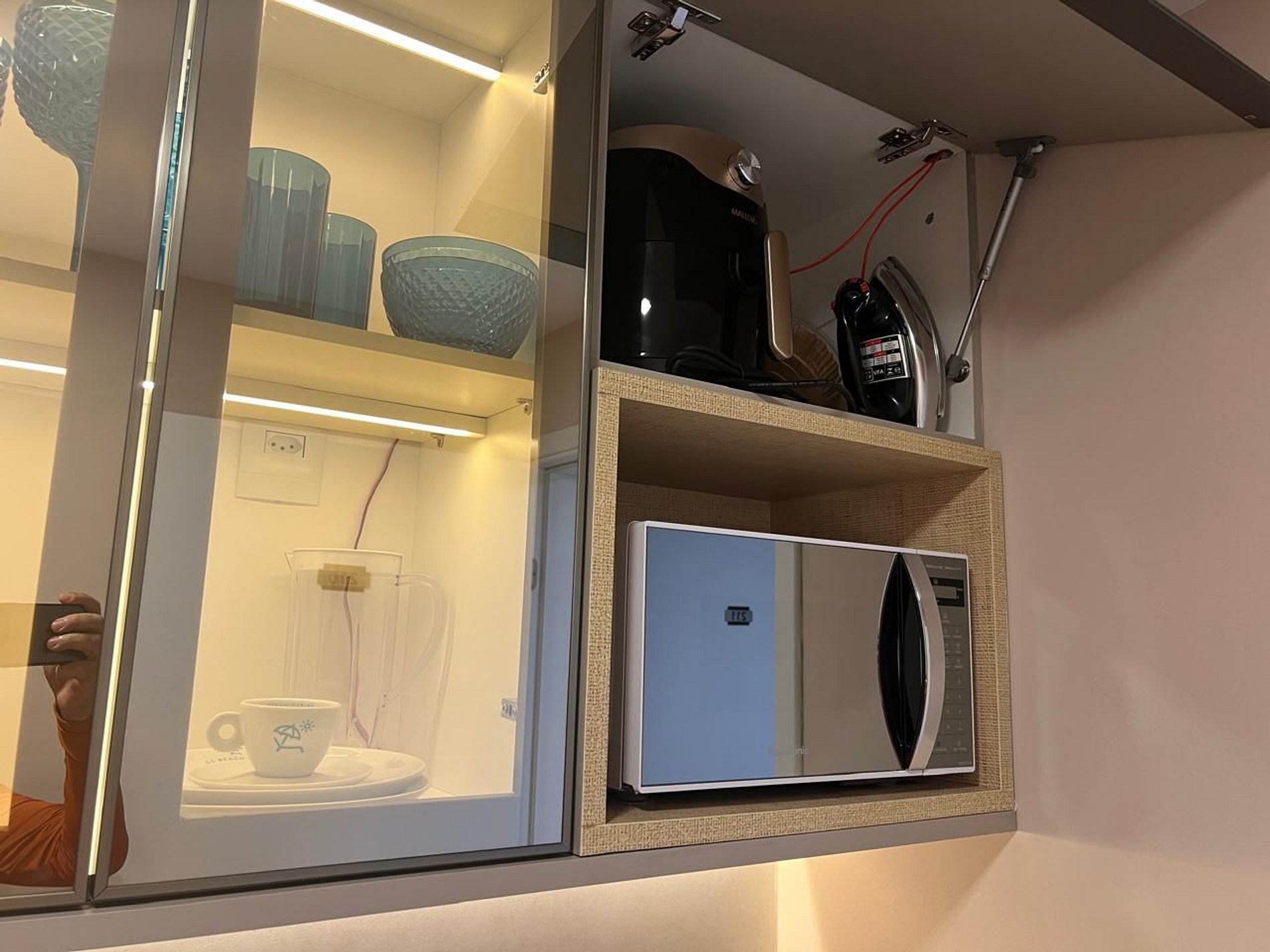 Cozinha totalmente equipada: Dispõe de todos os eletrodomésticos, eletroportáteis, louçaria e panelas para que você possa preparar suas refeições com toda a praticidade.