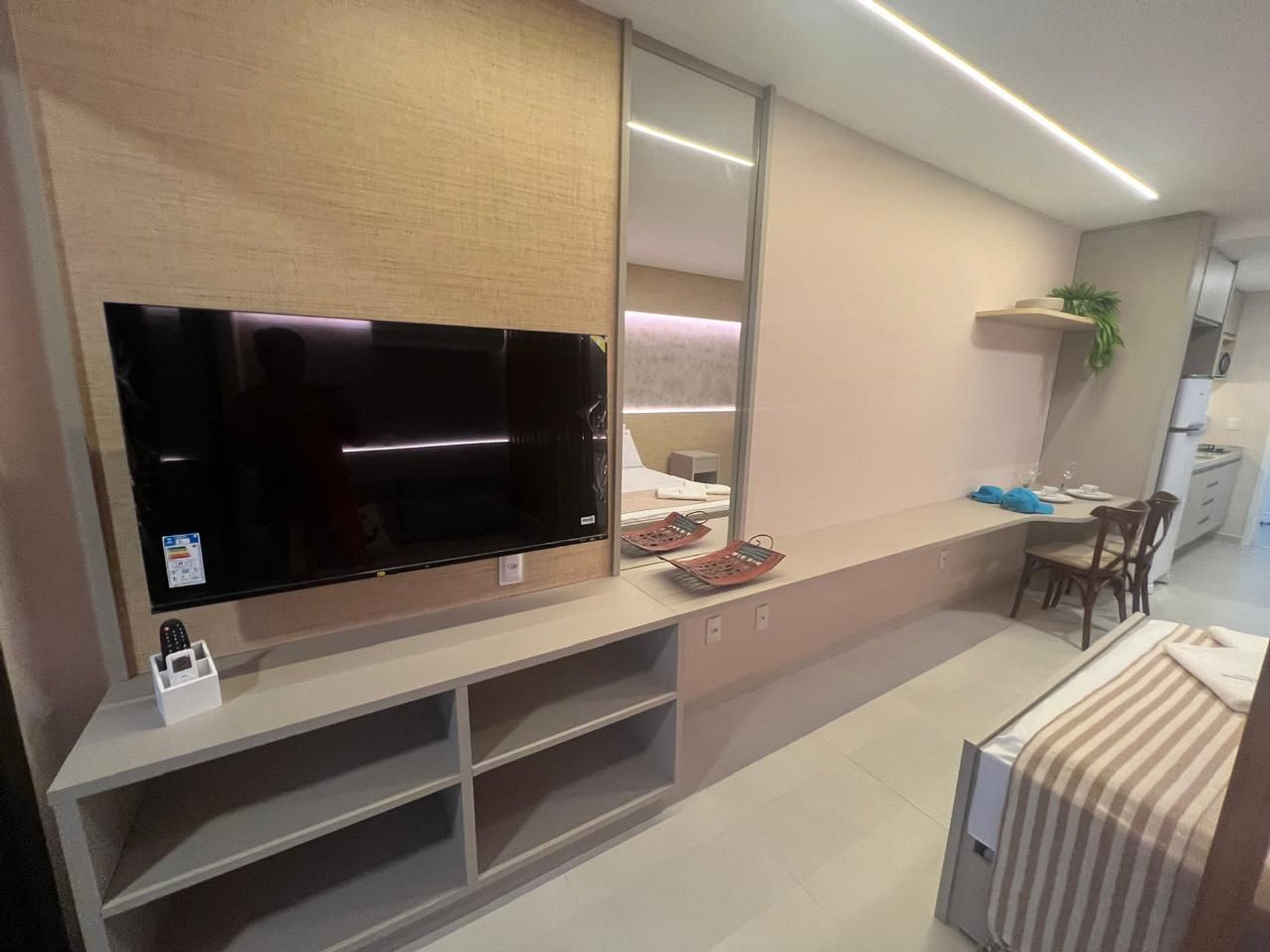 O flat é decorado com muito bom gosto, cada detalhe é pensado para criar uma atmosfera aconchegante e acolhedora. A cozinha totalmente equipada e o enxoval completo de cama e banho são diferenciais que fazem com que os hóspedes sintam-se em casa, com o conforto de ter tudo que precisam à disposição. Os espaços de lazer para crianças, a beira da piscina agregam conveniência, tornando a estadia prática e prazerosa, ideal para famílias, casais e amigos em busca de uma experiência autêntica e especial em Carneiros.