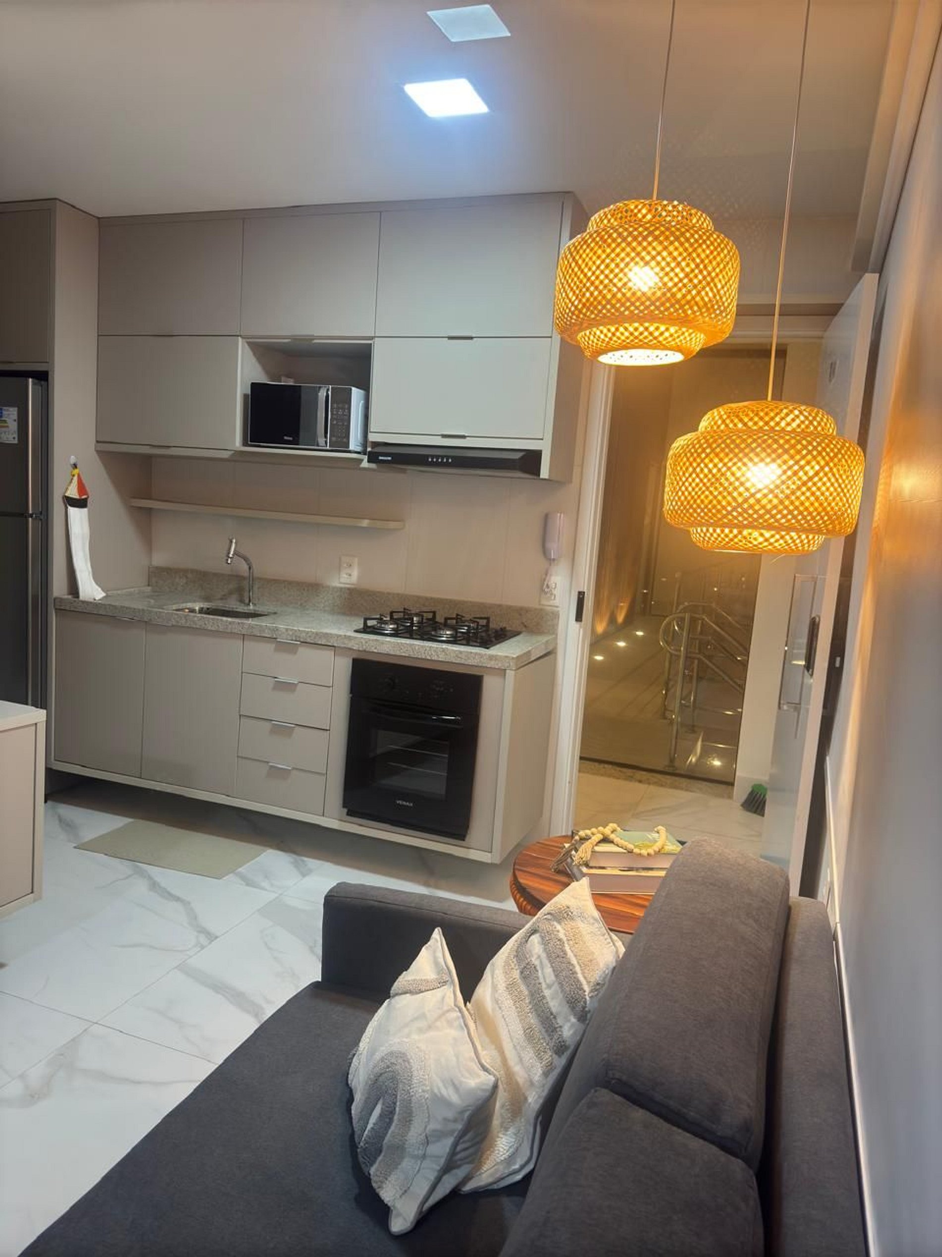 O que torna nosso espaço especial é a atenção aos detalhes: fornecemos todo o enxoval de cama e banho, além de uma cozinha completa, equipada com tudo que você precisa para preparar suas refeições. O ambiente é climatizado com ar-condicionado no quarto e na sala, e a decoração foi feita com carinho para proporcionar uma experiência acolhedora, charmosa e confortável.
